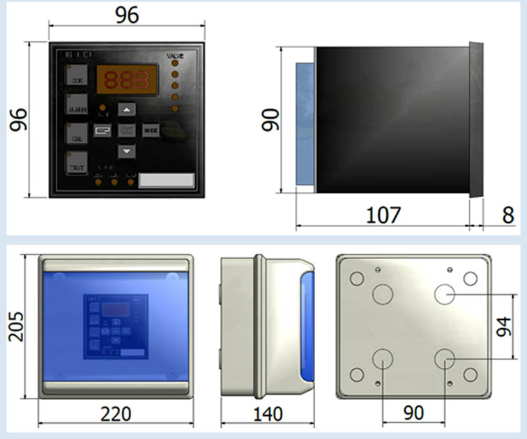 - Ohjelmoitava ohjain etupaneelin asennukseen