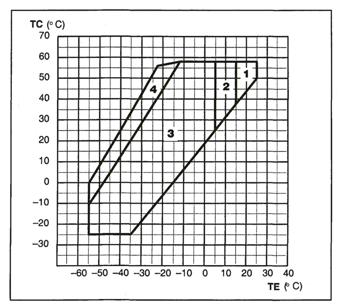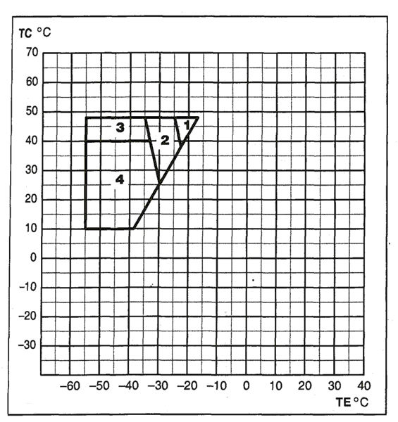 Operating limits single stage compressors TCMO, TSMC100S-L, TSMC 180