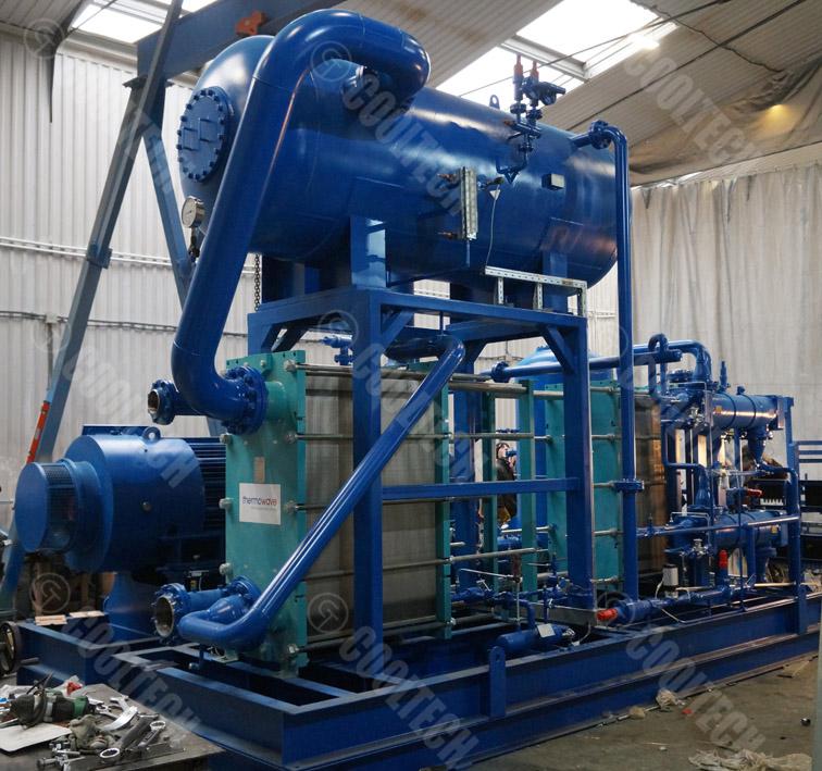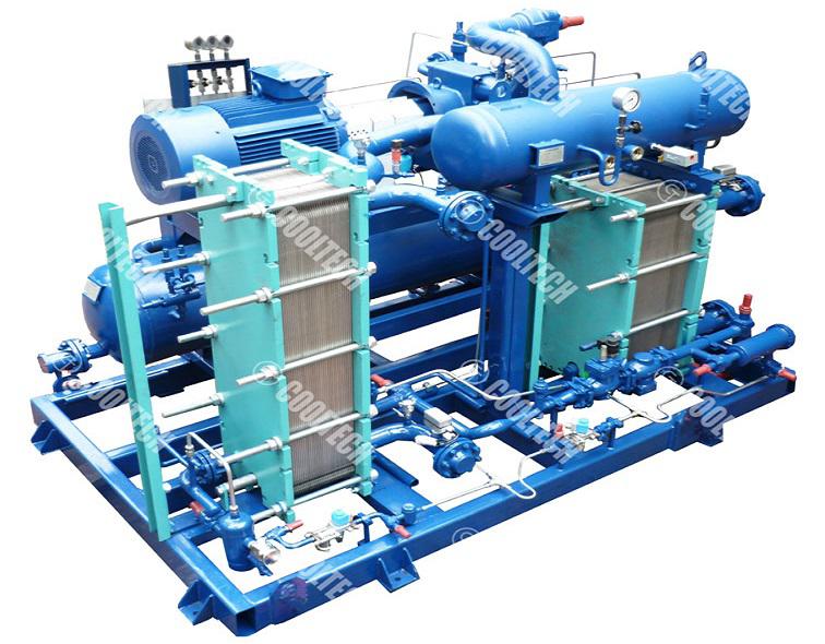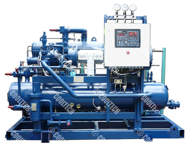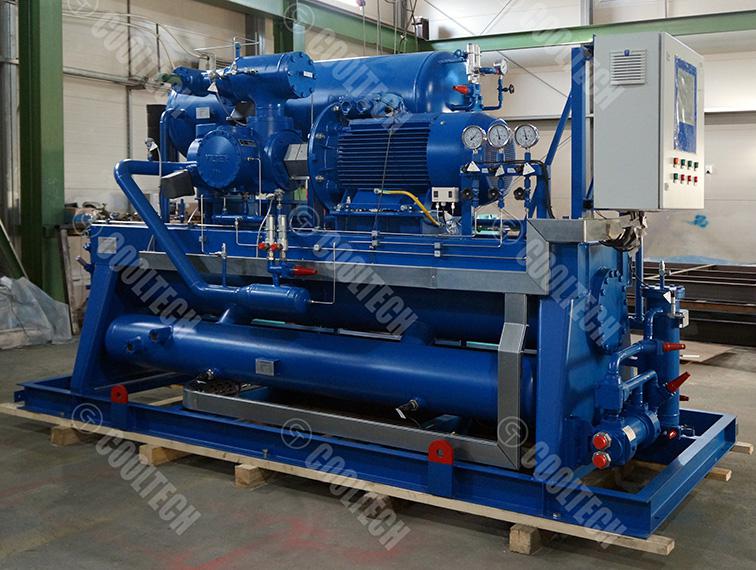 Liquid cooler (chiller) - is a fully packaged refrigeration unit consisting of plate/shell-and-tube/shell-and-plate evaporators and condensers, screw (piston) compressor, oil and liquid separators, electric motor, microprocessor-based control and monitoring, starter panel, etc.