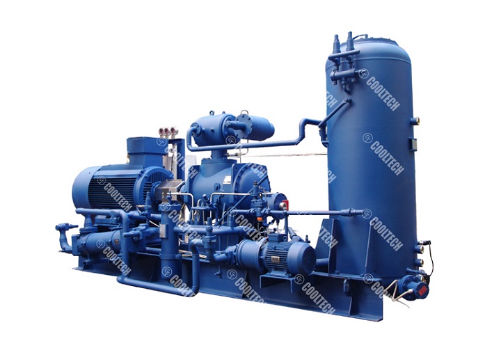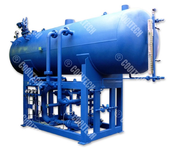 Refrigeration system for cameras of additional freezing with the performance of 550 kW at the mode of -42/+35 oC (refrigeration units, pump-circulation station, vessels, condenser).